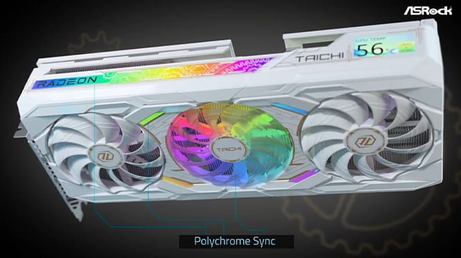 اگرچه طراحی کلی سیستم خنک‌کننده این کارت شباهت زیادی به نسخه Taichi OC دارد و از همان ترکیب سه رنگ مشکی، خاکستری و کروم الهام گرفته، اما قاب آن حالا تقریباً به طور کامل سفید شده و یک نوار اکریلیک ARGB در بخش بالایی آن دیده می‌شود.